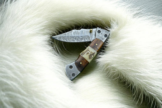 Custom Handmade Damascus Pocket Knife – Bone & Wood Handle